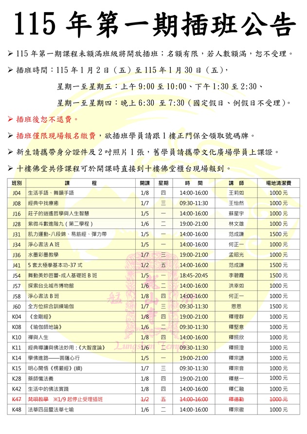 | 【藝文佛學】115年第一期插班公告 |
