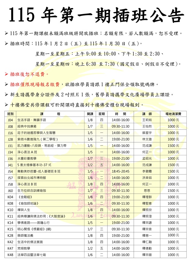 | 【藝文佛學】115年第一期插班公告 |