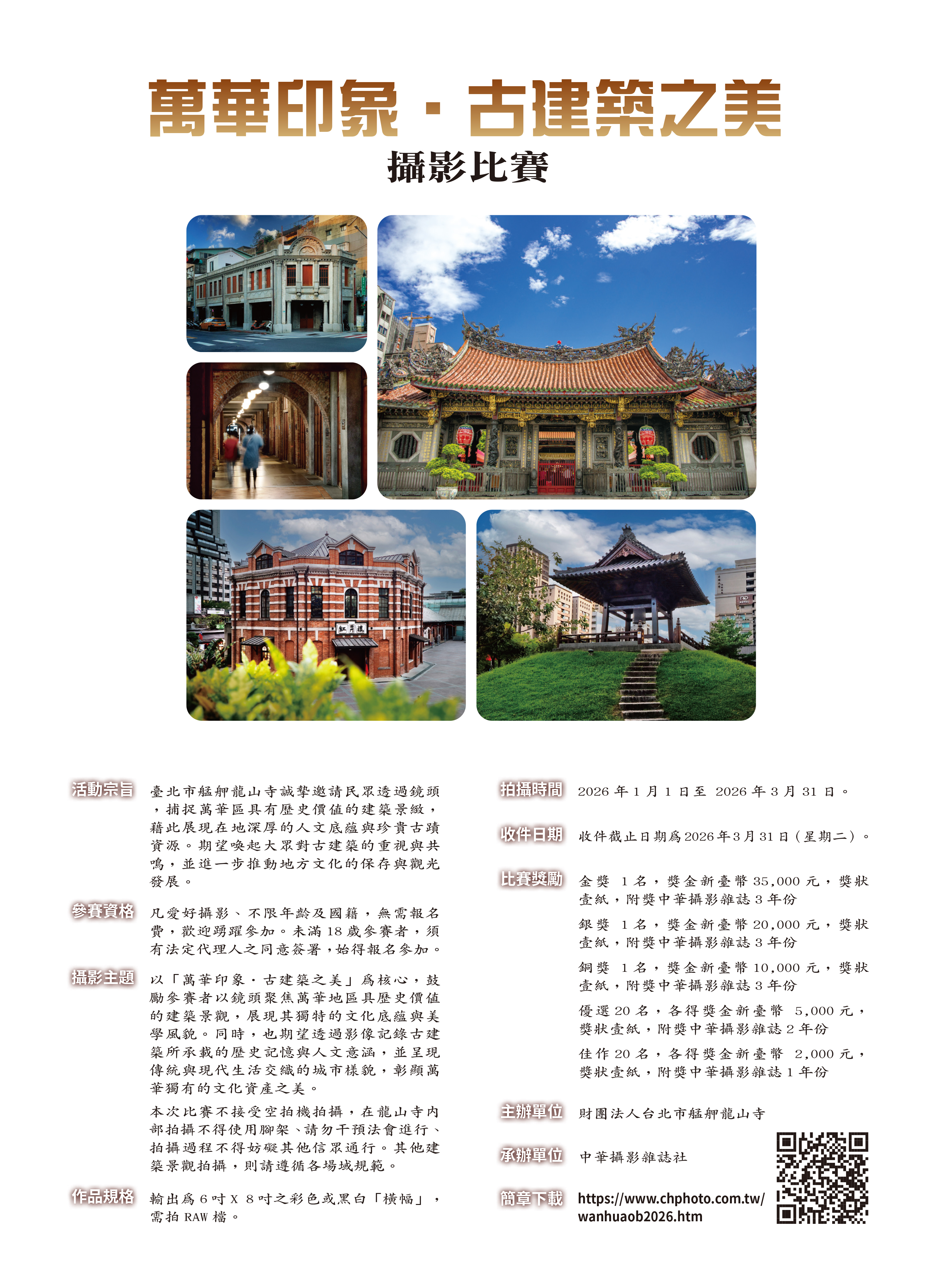 | 2026「萬華印象.古建築之美」攝影比賽 | |