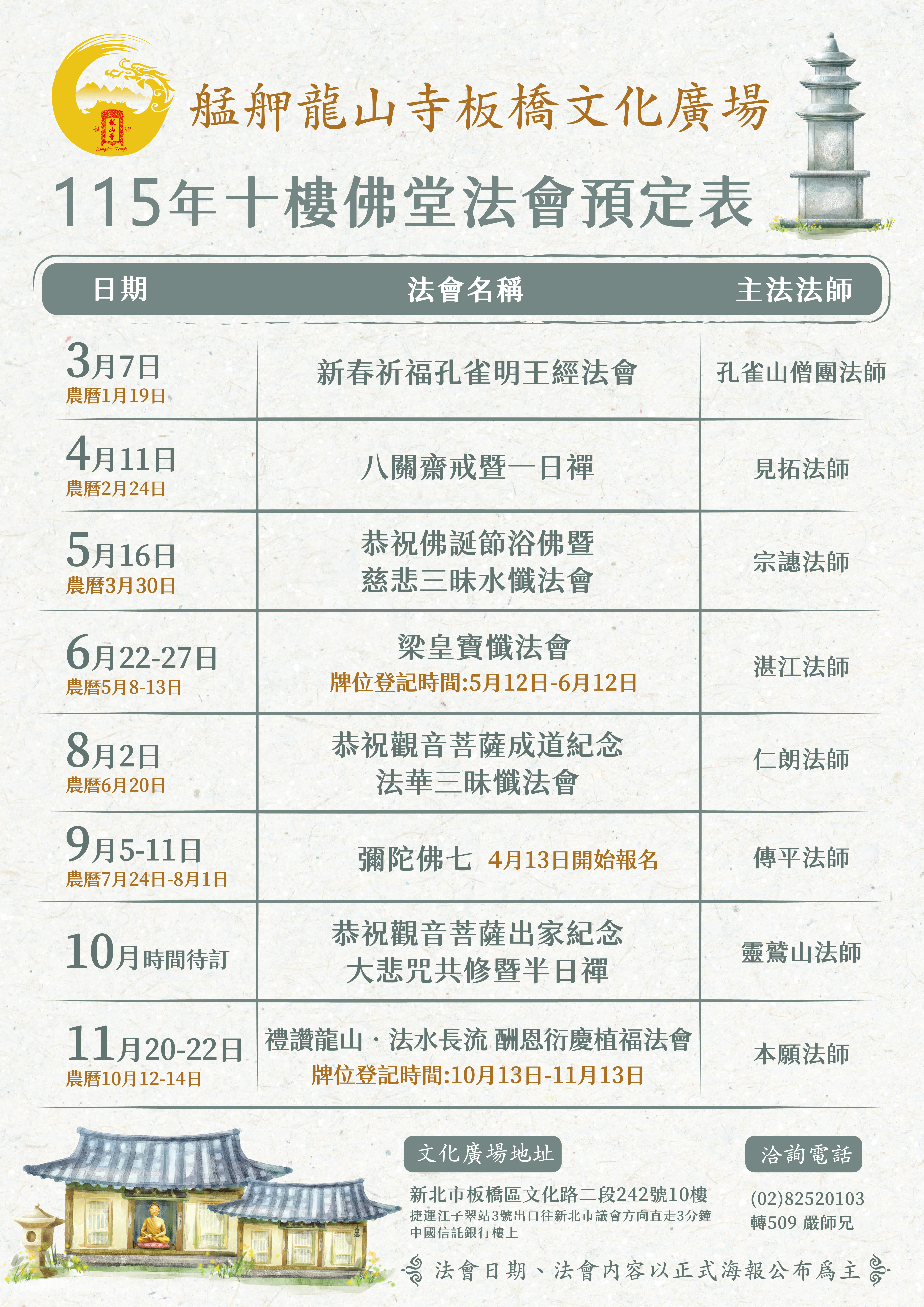 115年十樓佛堂年度法會預定表